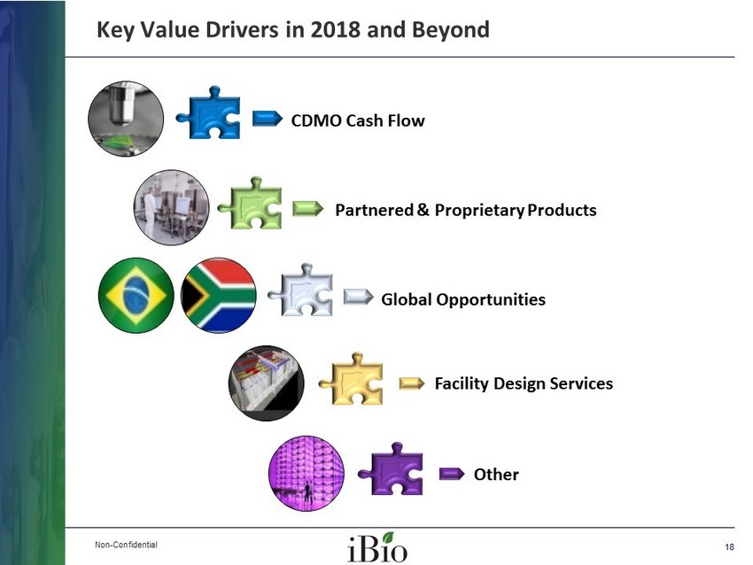 Key Value Drivers in 2018 and Beyond 18 Facility Design Services Non - Confidential Global Opportunities Partnered & Proprietary Products CDMO Cash Flow Other