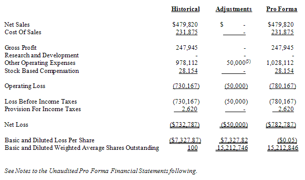 In connection with the Company entering into a Separation and Distribution Agreement (the Distribution) with its Parent in November 2007, the Company will restate its stockholders deficiency to reflect the Distribution transaction, whereby, the Parent has agreed to distribute, pro rata, to the holders of its common stock, all of the shares of the Companys common stock owned by Integrated BioPharma, Inc., except for the portion to be retained by the Parent, which portion will be converted into common stock of the Company at the time of the Distribution and at that time, the Parent will contribute the balance of the amount owed by the Company to the Parent to additional paid in capital and add that amount to its cost basis.