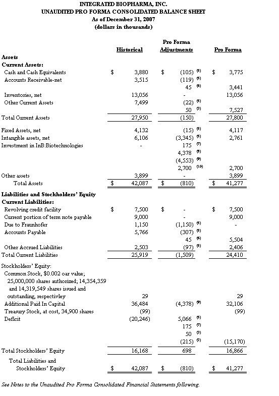 I am pleased to inform you that on November 9, 2007, the Board of Directors of Integrated BioPharma, Inc., approved a plan to distribute its equity interests in our subsidiary, InB:Biotechnologies, Inc., to our stockholders. This process is commonly referred to as a spin-off. Integrated BioPharma stockholders will receive one share of InB:Biotechnologies common stock for each share of Integrated BioPharma common stock owned as of the record date, which is _________, 2008. InB:Biotechnologies is currently organized as a New Jersey corporation. We plan to reincorporate InB:Biotechnologies as a Delaware corporation prior to effecting the spin-off. Accordingly, this Information Statement refers to InB:Biotechnologies as if such reincorporation has occurred.