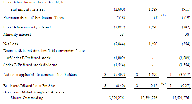 Federal net operating losses of approximately $1.5 million were used by INB and are not available to the Company. The Company recognized a Federal income tax benefit of $485,811 in the fiscal year ended June 30, 2006 and $17,600 in prior years for the use of the Federal net operating losses by the consolidated group and reduced the amount due to its Parent accordingly. Its Parent allocates the use of the Federal net operating losses available for use on its consolidated Federal tax return on a pro rata basis based on all of the available net operating losses from all the entities included in the control group. Federal and state net operating losses of approximately $2.5 million and $4.0 million are available to the Company and will expire beginning in 2008 through 2027. These carryforwards could be subject to certain limitations in the event there is a change in control of the Company and have been fully reserved in the Company’s valuation allowance account as there is substantial doubt the Company would be able use these net operating losses to offset future taxable income before the net operating losses expire and the Company is able to realize the related benefit.