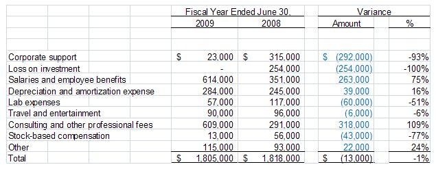 (c) Disagreement Regarding Achievement of Milestone Under R&D Agreements. As of June 30, 2009 in connection with the R&D Agreements described in the previous section, FhCMB and the Company disagree regarding whether a certain technical milestone has been achieved by FhCMB which would trigger the obligation of a $250,000 payment by the Company to FhCMB as of June 30, 2009. Management of both entities are working together to resolve this disagreement. If the Company recorded this obligation as of June 30, 2009, research and development expenses and the loss for the year ended June 30, 2009 would have increased by $250,000 and accrued liabilities at June 30, 2009 would have increased by the same amount.