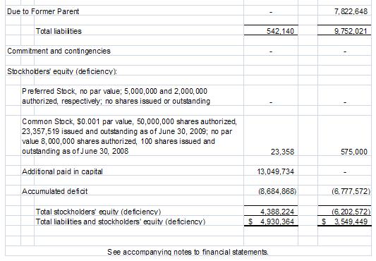 For the fiscal year ended June 30, 2009, the Company recorded stock-based compensation expense of $13,059 in selling, general and administrative expenses which consisted of $8,296 of expense related to options issued by the Company after the date of the spin-off from the Former Parent. Stock-based compensation expense in the fiscal years ended June 30, 2009 and 2008 included $4,763 and $55,945, respectively, allocated from our Former Parent for our employees and directors who received compensation in the form of stock options providing for the purchase of our Former Parent’s stock upon vesting of their awards.