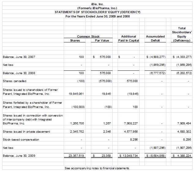 In August 2008, the Company adopted the iBioPharma 2008 Omnibus Equity Incentive Plan (the "Plan") for employee, officers, directors, or external service providers. Under the provisions of the Plan, the Company may grant options to purchase stock and/or make awards of restricted stock up to an aggregate amount of 10,000,000 shares. Options granted under the Plan may be